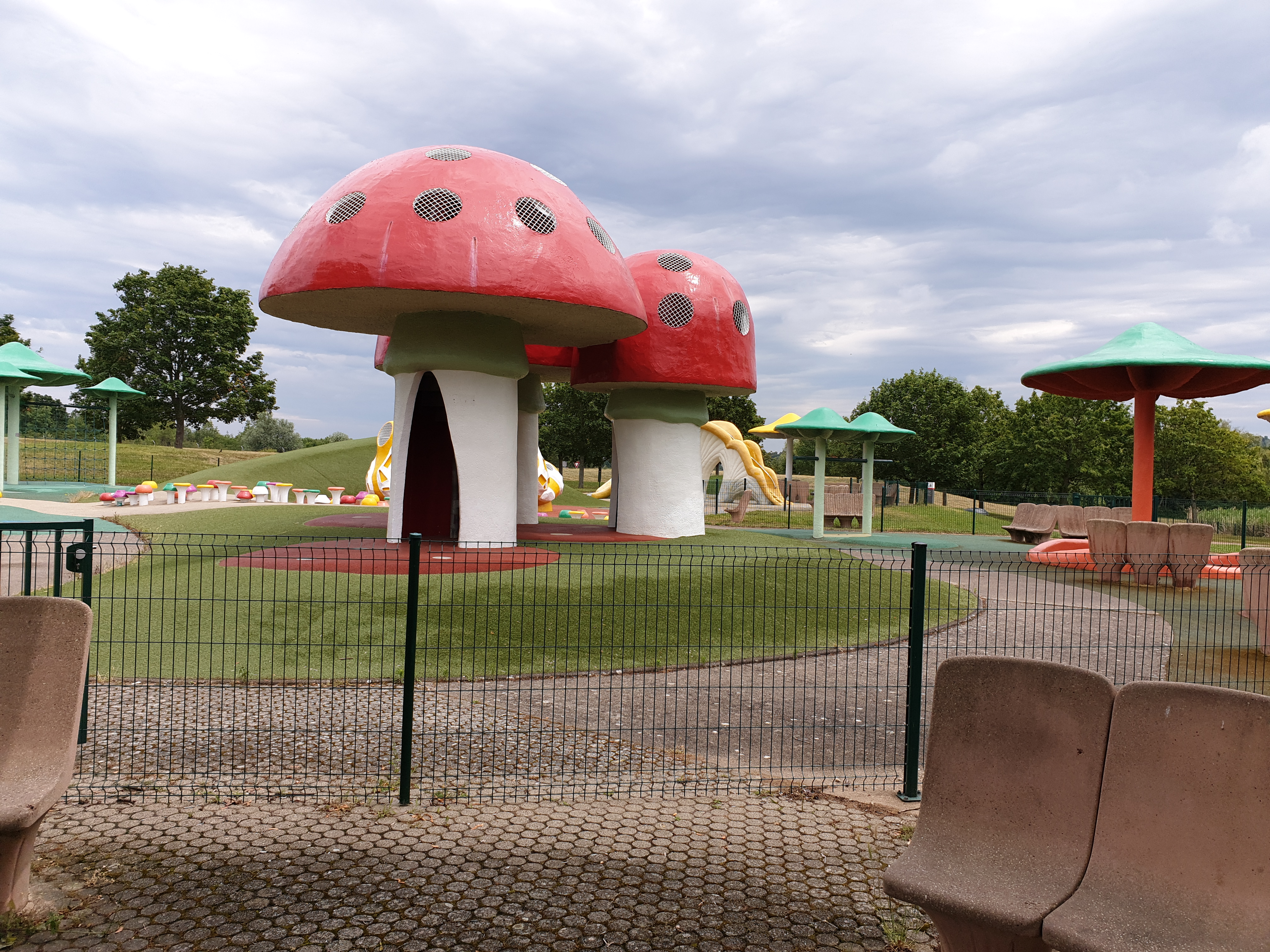 Une superbe air de repos pour que les enfants puissent se dégourdir les jambes. Une multitude de jeux sur le thème des champignons. Un arrêt obligatoire quand nous revenons de Nigloland.
