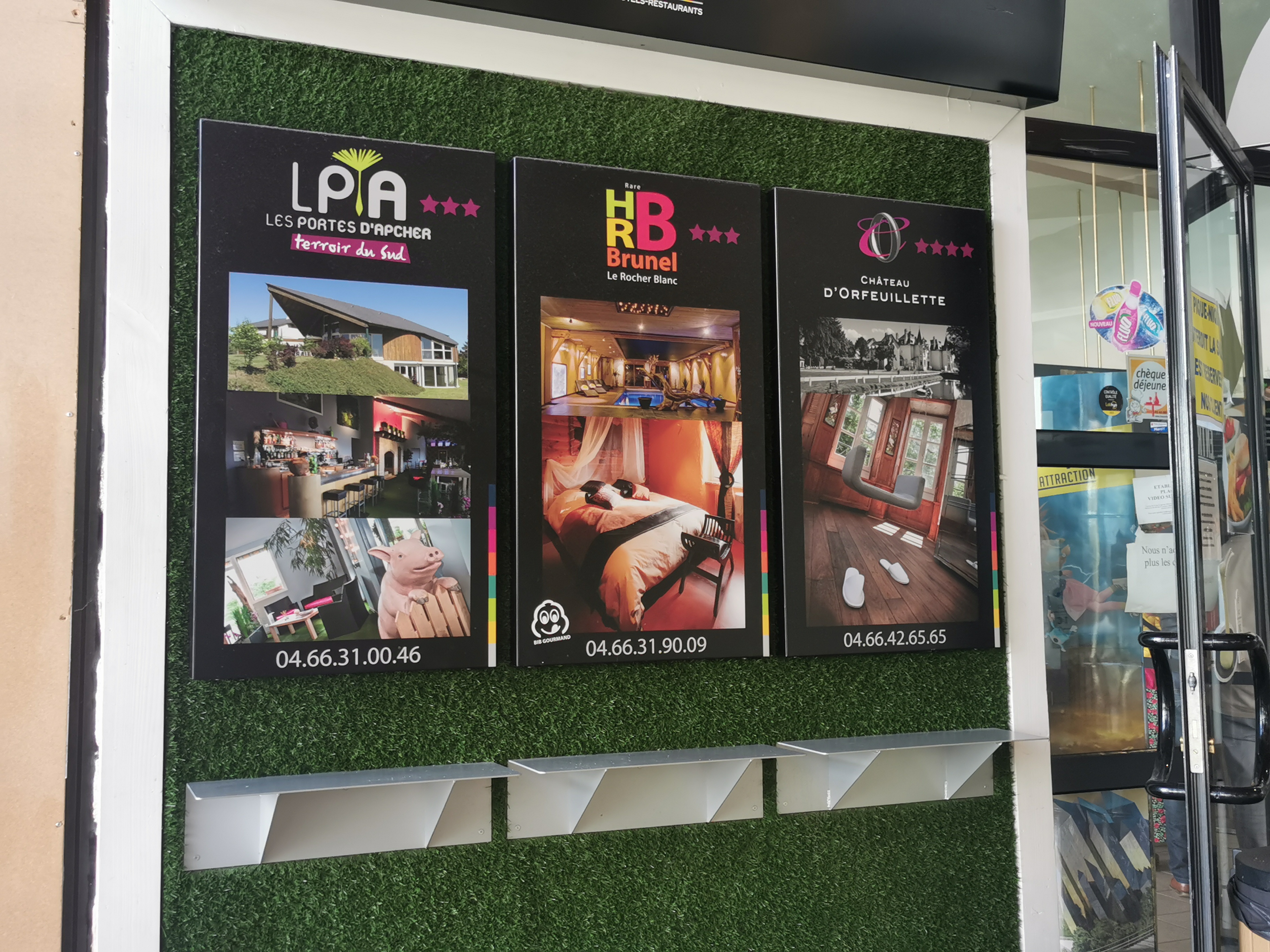 Une cafétéria sans possibilité d'acheter des sandwichs. Un magasin cher de spécialités de la Lozère. Un office du tourisme.