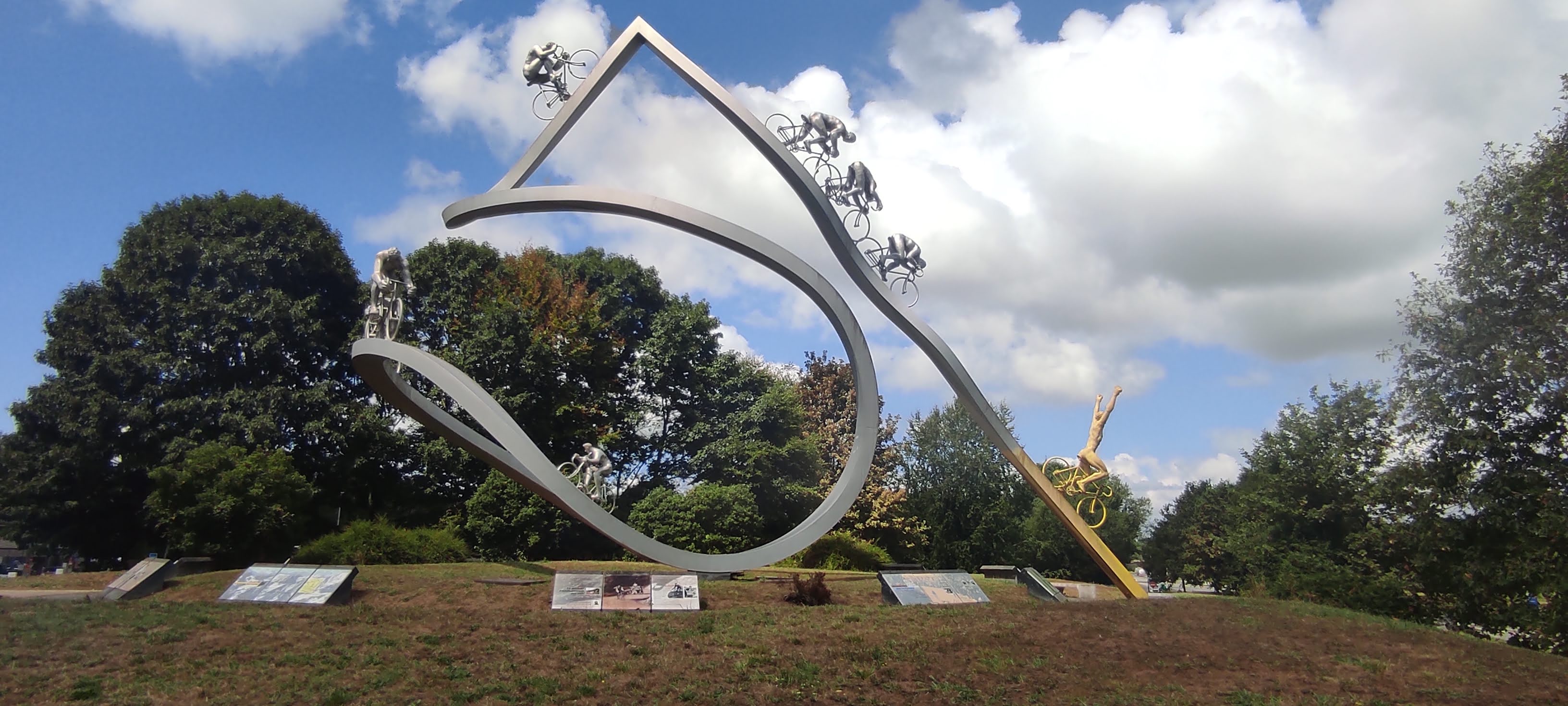 Bel endroit pour faire une halte en bord de route. Il y a beaucoup de places de stationnement et beaucoup de verdure pour pique-niquer. Très curieux monument hommage au Tour de France.